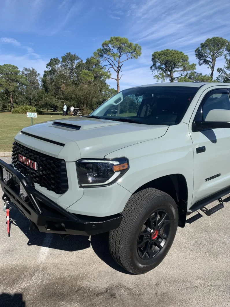 - Exterior: Unique TRD Pro grille, hood scoop, and dual exhaust